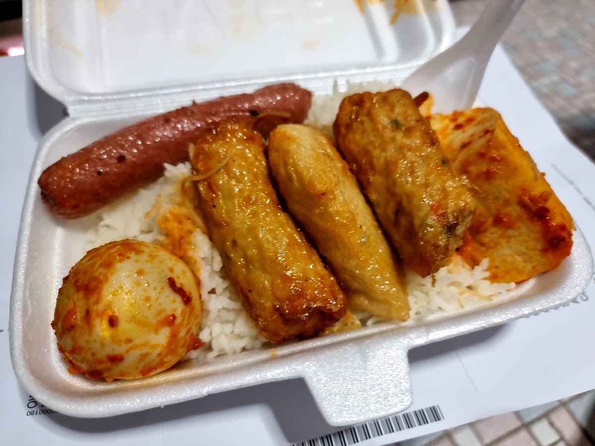 There’s a Malay stall located at the corner of the shop. She is very friendly and generous with what she gives. She is obviously here to feed people and not earn money. Easily outside, a pack of nasi lemak like this will probably be $6-$7. But here, she charges only $2.50 and gave me an additional hotdog, the orange kueh thingy. Food is not bad either!!